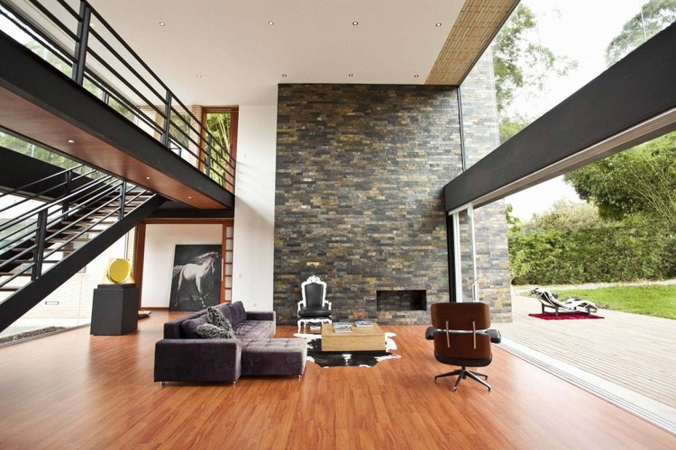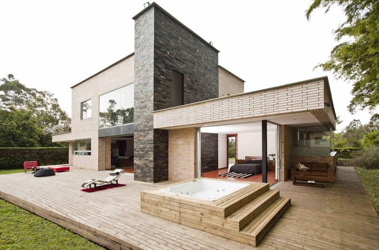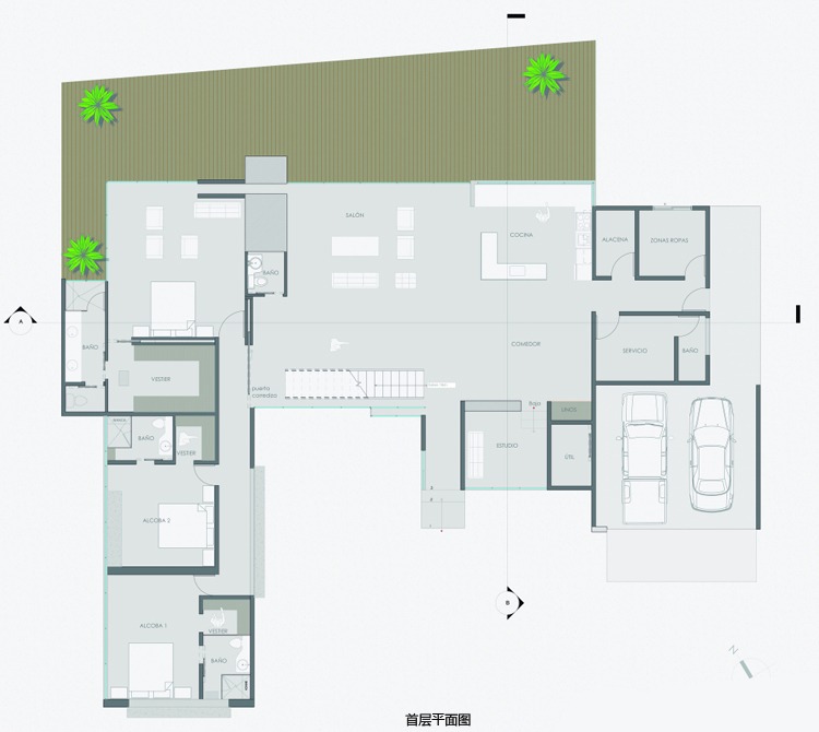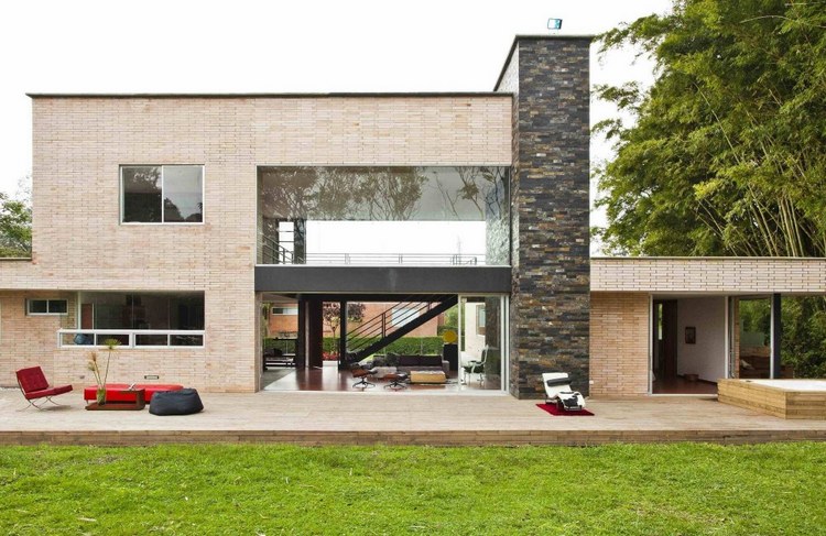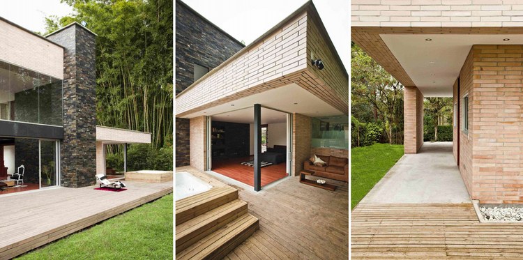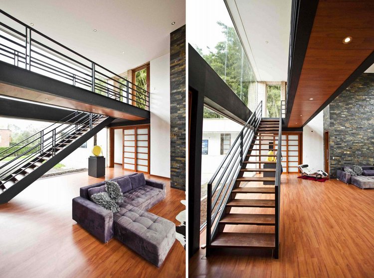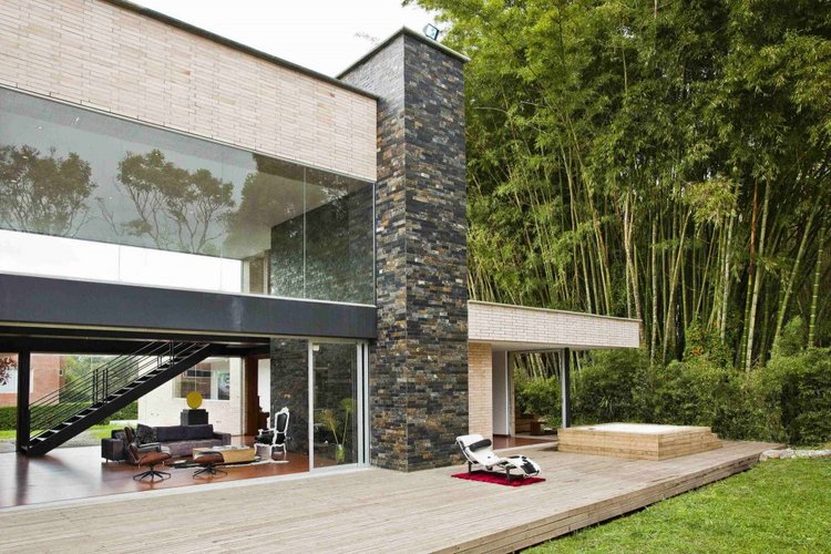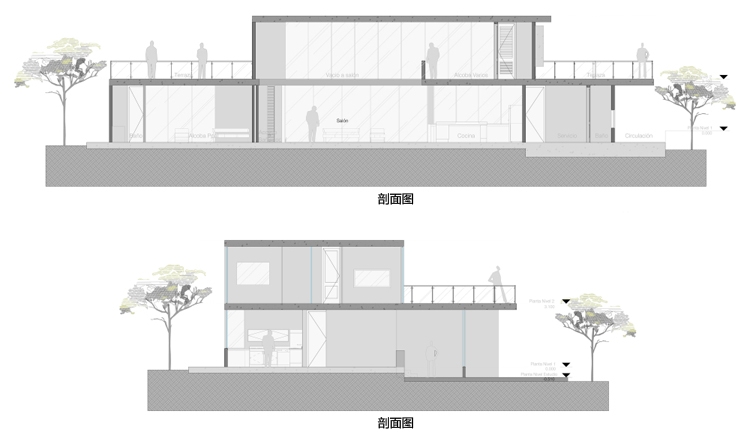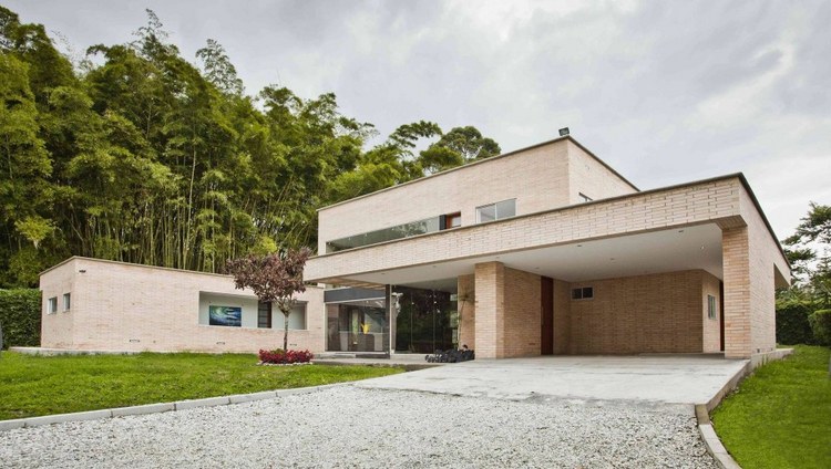 別墅設計,Olaya別墅(Olaya House)Olaya別墅位于哥倫比亞Medellin市中心大概45分鐘的車程,房屋的首層采用統(tǒng)一樣式的磚塊鋪筑而成,但各功能分區(qū)布局規(guī)整、明確,包括服務區(qū)、活動區(qū)和私人區(qū)。服務區(qū)域包括車庫、傭人房、洗衣房和貯藏室。活動區(qū)內設有一個巨大的廚房并與用餐區(qū)和主客廳相對,通過一道甲板式通道便可來到院落。私人區(qū)有三個我是,每一個房間都帶有獨立衛(wèi)生間、浴室和更衣室。活動區(qū)與私人區(qū)被一道巨大的黑色磚墻所隔開,不論從室內還是室外都可以看到這道墻,同時墻體也是房屋主結構之一,墻體內部設有一個公共于是和兩個獨立的煙囪,分別服務于主臥和主客廳的通風。經過位于一層服務區(qū)的風格化樓梯便可以來到二層:這里簡單舒適,分為兩個寬敞的區(qū)域,一個是書房一個是主臥,另外還設有兩個巨大的露臺陽臺,可以從這里欣賞外面的風景。值得一提的是,露臺與房屋由一座小橋連接。