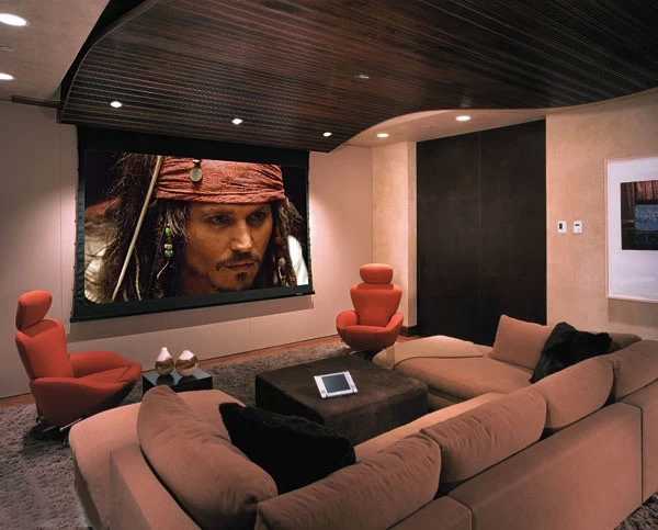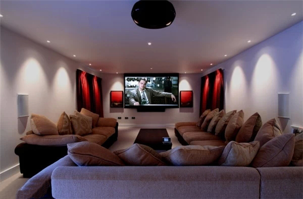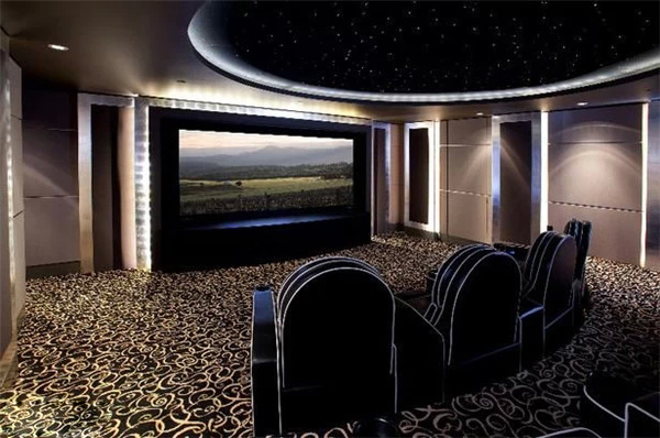 上海豪宅裝修中不可不炫酷的影視廳,家庭影院是要在家庭環境中搭建的一個接近影院效果的可欣賞電影享受音樂的系統,可讓家庭用戶在家欣賞環繞影院效果的影碟片、聆聽專業級別音響帶來的音樂、并且支持卡拉OK娛樂。想想也是蠻浮夸的!不過我家一定要有!