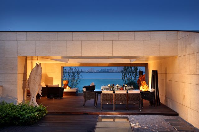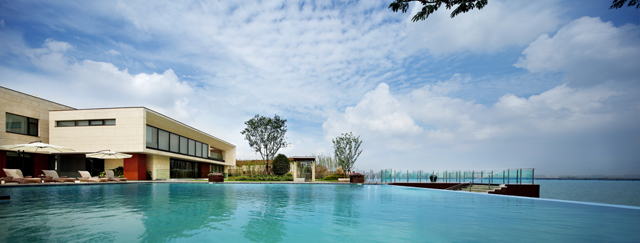 在項(xiàng)目整體規(guī)劃中,中央景觀帶引入蘇式街巷和小廣場(chǎng)格局,形成自由收放的公共休閑活動(dòng)空間,主要建筑傍依兩側(cè),或直接臨湖,或臨寬闊河道,在景觀方面基本達(dá)到戶戶臨水的生態(tài)居住格局。為達(dá)到對(duì)資源的充分利用,建筑高度從東往西逐漸抬高,以滿足每棟別墅對(duì)湖景的觀賞需要。在社區(qū)南端臨湖5000m2景觀綠地內(nèi),將配置蘇州首家小型直升飛機(jī)停機(jī)坪及私家游艇碼頭,為整個(gè)社區(qū)的定位提升,創(chuàng)造高附加值。就單棟建筑而言,規(guī)劃中強(qiáng)調(diào)戶戶具有超闊私家院落、私家泳池、私家親水駁岸,實(shí)現(xiàn)最大化的居住舒適性,強(qiáng)調(diào)私密性和私屬領(lǐng)地價(jià)值。