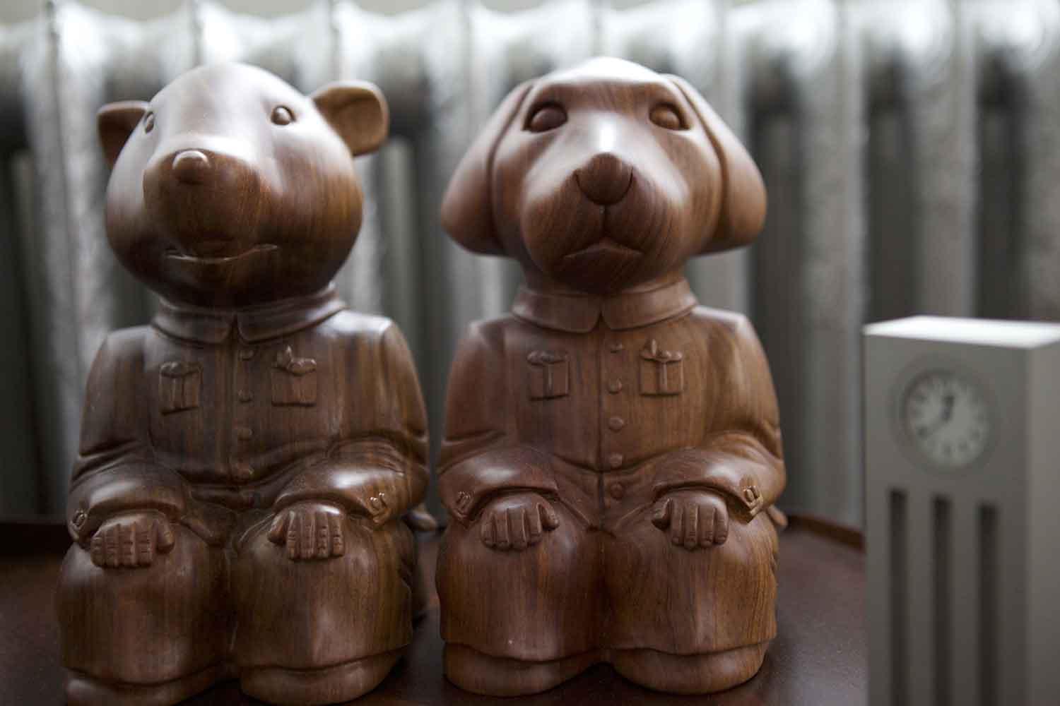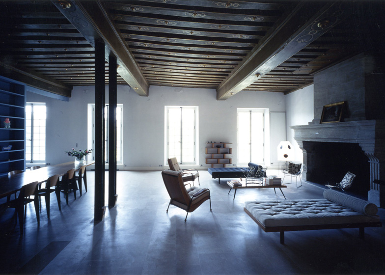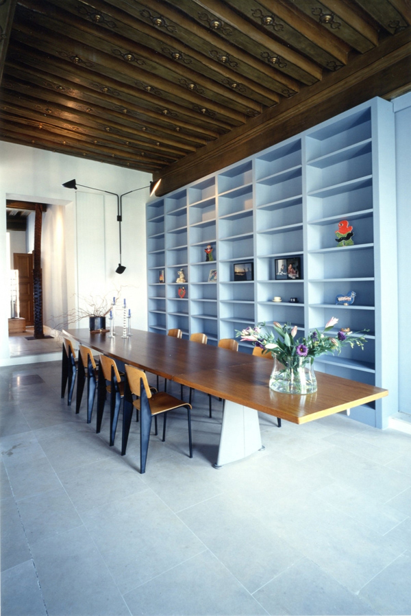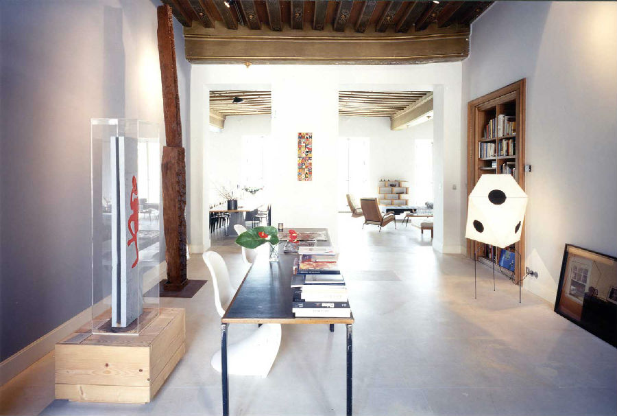 一張桌子、一個(gè)窗戶、一個(gè)皇家廣場,雕像和馬。在巴黎孚日廣場附近,F(xiàn)uksas建筑師夫婦住在這里。設(shè)計(jì)大師Jean Prouvé的原版家具、或是20世紀(jì)的不少經(jīng)典設(shè)計(jì),還有一些民間工藝品在這個(gè)寬闊的空間內(nèi)協(xié)調(diào)一致。在入口處還有一個(gè)戰(zhàn)士雕像等待著這對建筑師遠(yuǎn)途出差回來的時(shí)刻。