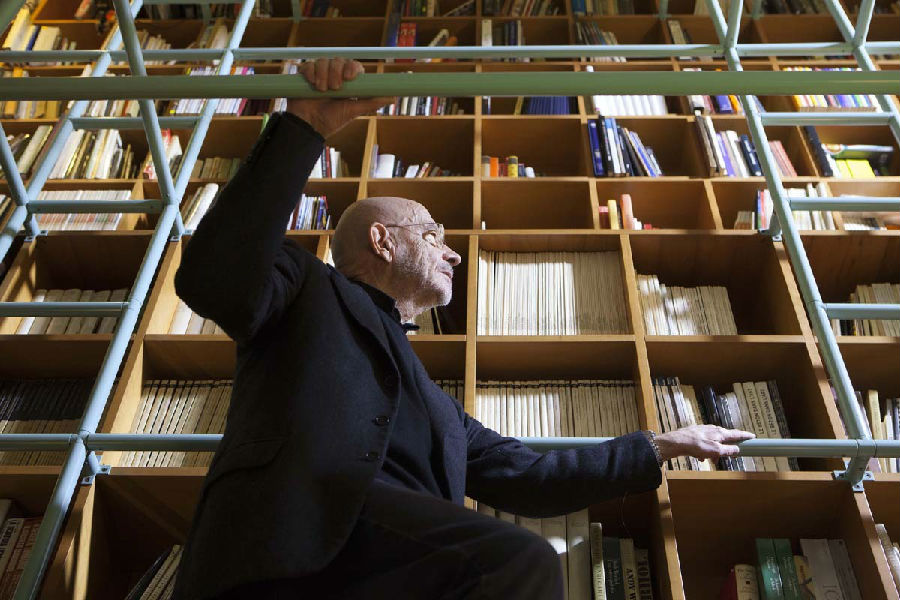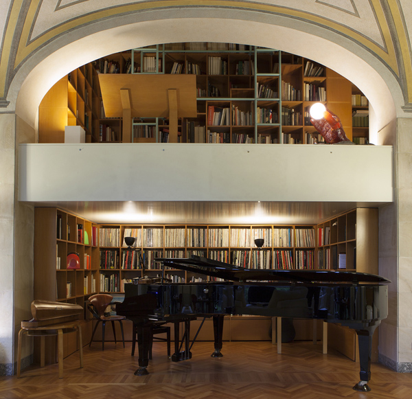 Bellini愛米蘭,愛這座城市的文化和街道。這位意大利建筑大師的家就在米蘭市中心附近,一座建筑物的19樓。整個(gè)家的顏色就是典型的意大利風(fēng)格,最引入注目的是書房——這里簡直就是一座圖書館,高達(dá)九米的書柜放滿了各式書籍。